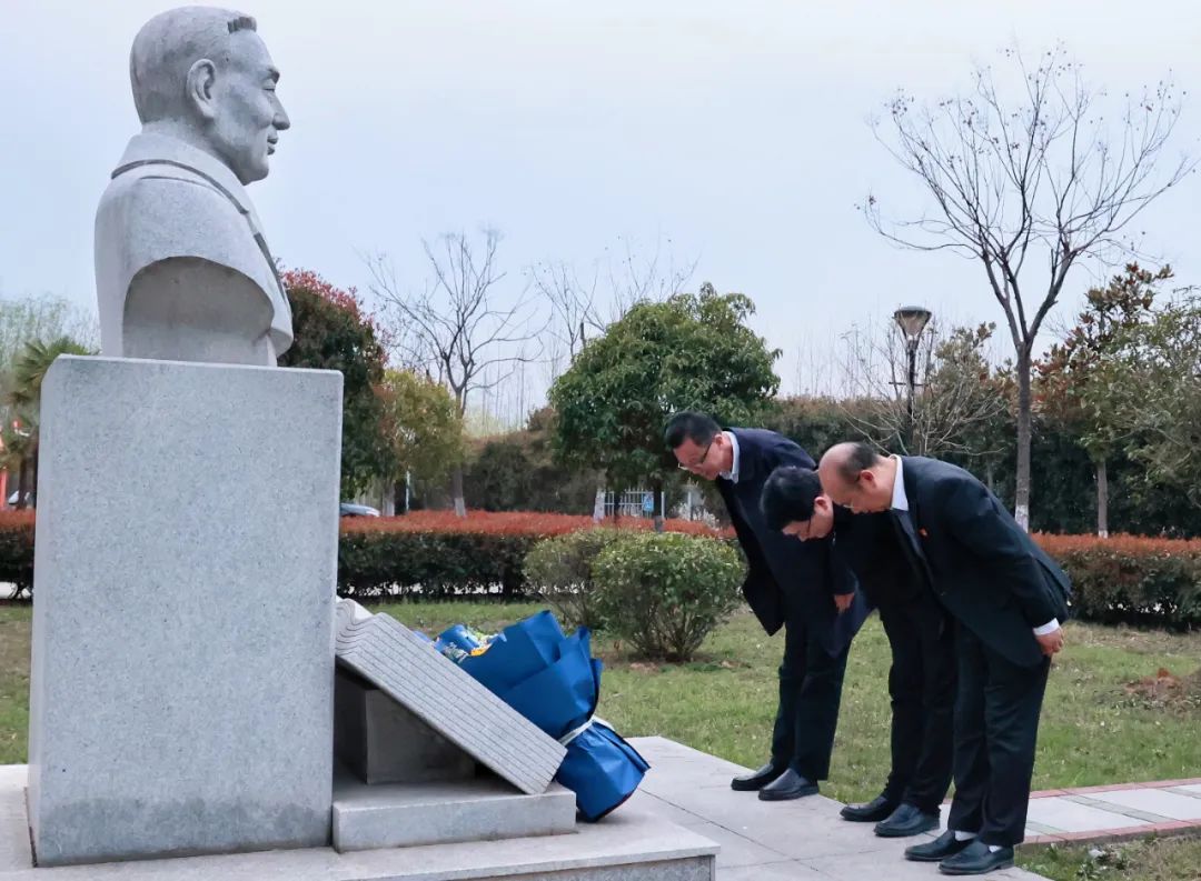 座談會結束后,聶偉迅、韓良炎、李中澤在愛國教育家、南開大學老校長張伯苓先生的雕像前獻花、鞠躬,表達了對一代偉人的緬懷之情。