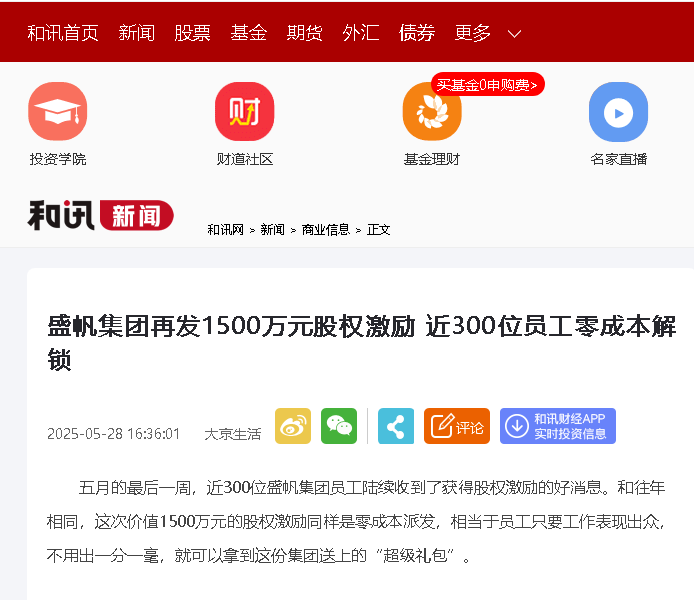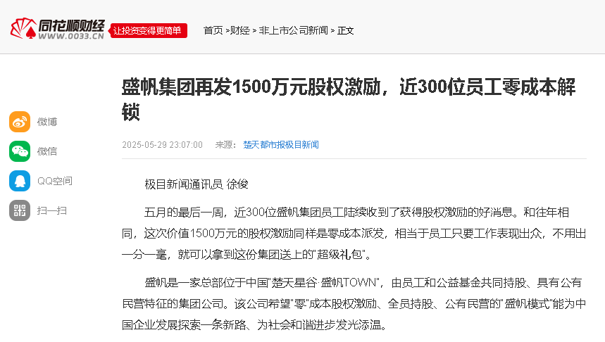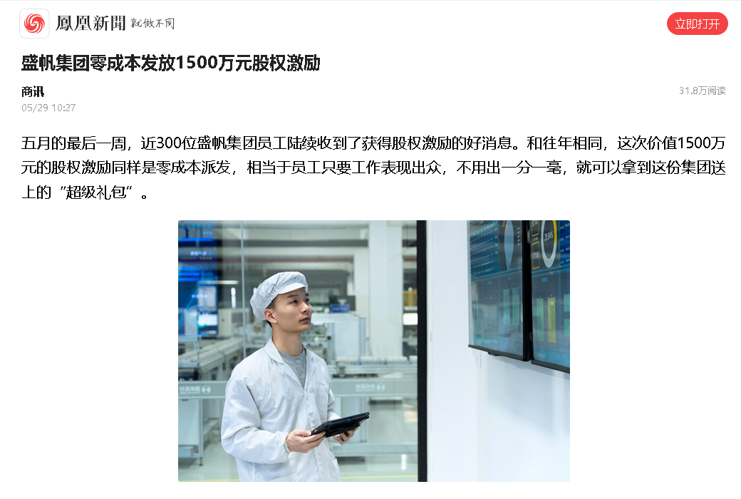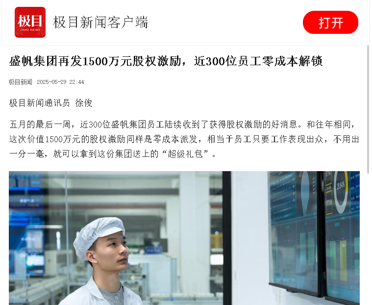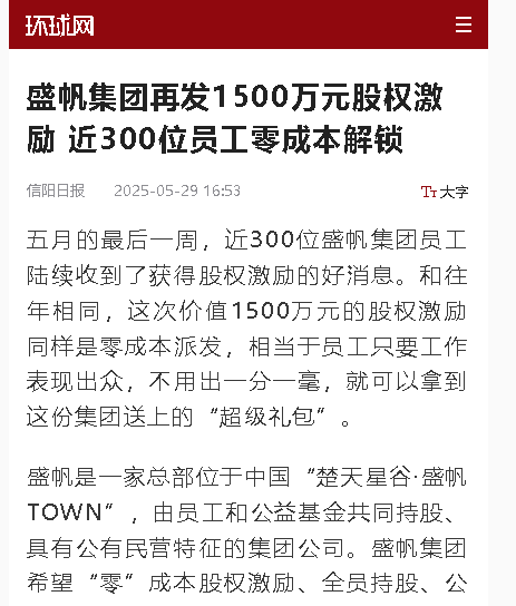 五月的最后一周,近300位盛帆集團員工陸續(xù)收到了獲得股權激勵的好消息。和往年相同,這次價值1500萬元的股權激勵同樣是零···