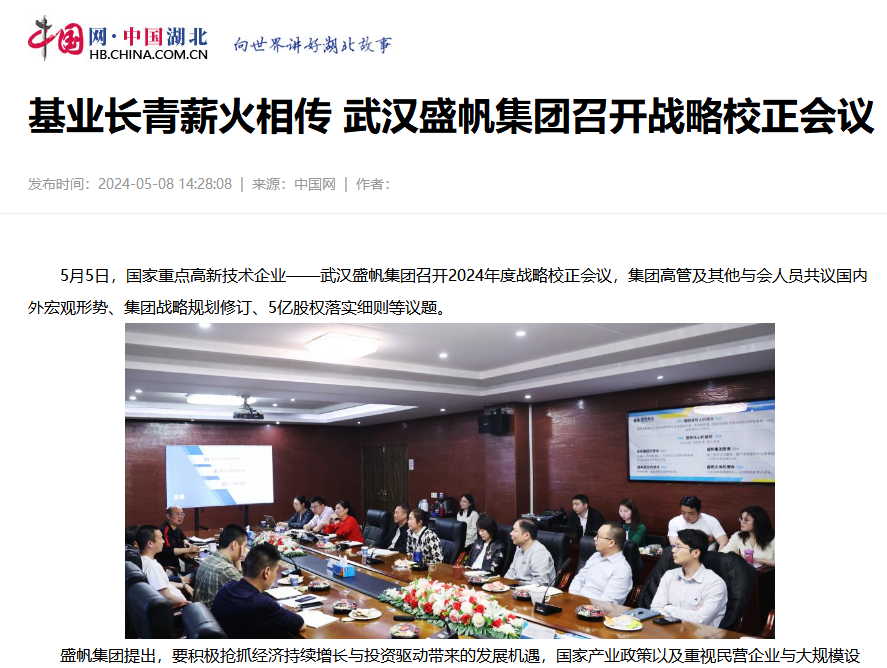 5月5日,國家重點高新技術(shù)企業(yè)——武漢盛帆集團召開2024年度戰(zhàn)略校正會議,集團高管及其他與會人員共議國內(nèi)外宏觀形勢、···