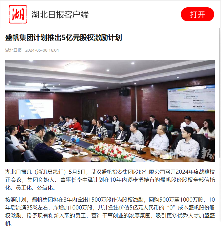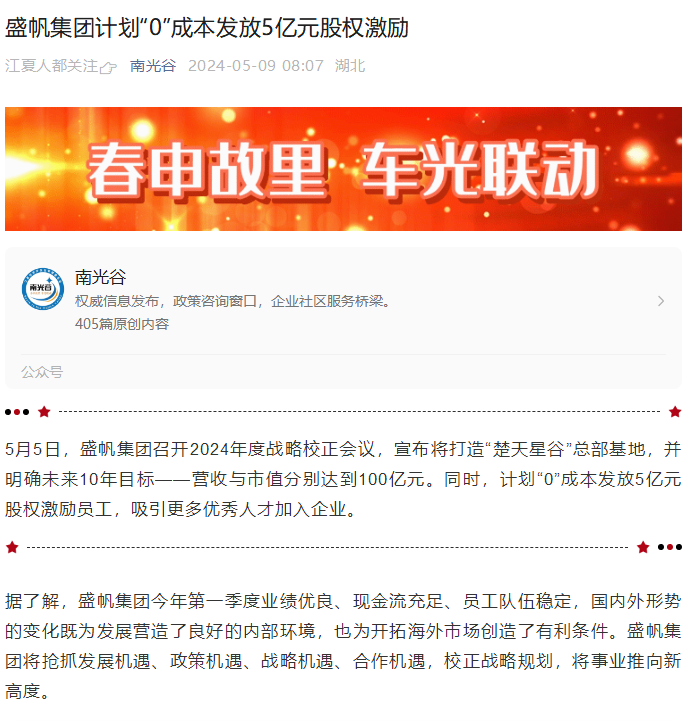 5月5日,盛帆集團召開2024年度戰(zhàn)略校正會議,宣布將打造“楚天星谷”總部基地,并明確未來10年目標——營收與市值分別達···