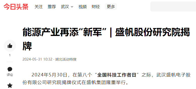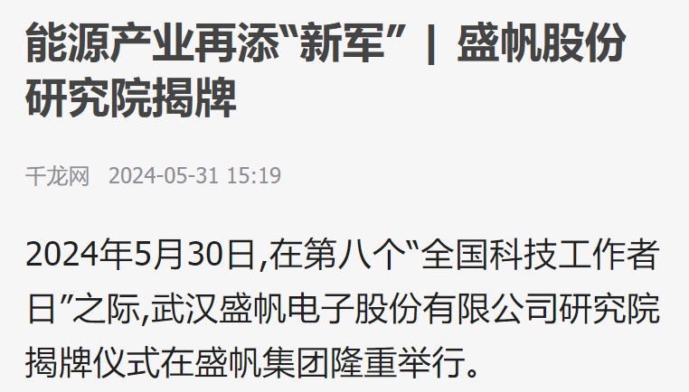 極目新聞通訊員王清 楊龍5月30日,在第八個“全國科技工作者日”當天,武漢盛帆電子股份有限公司研究院在漢揭牌。盛帆集···