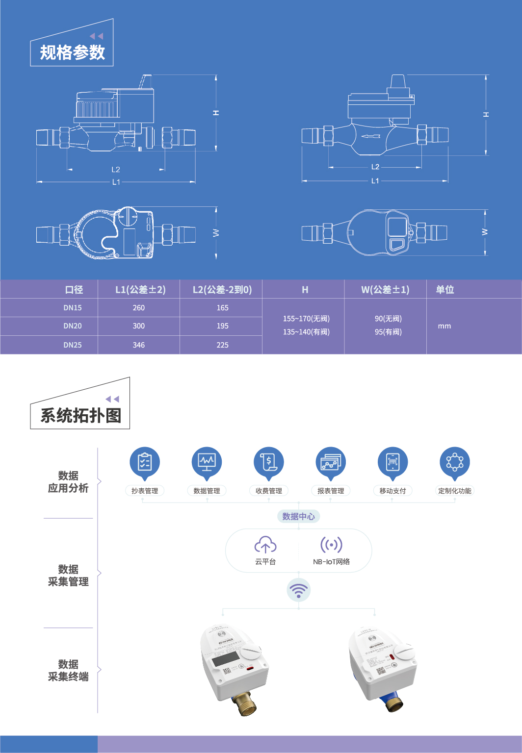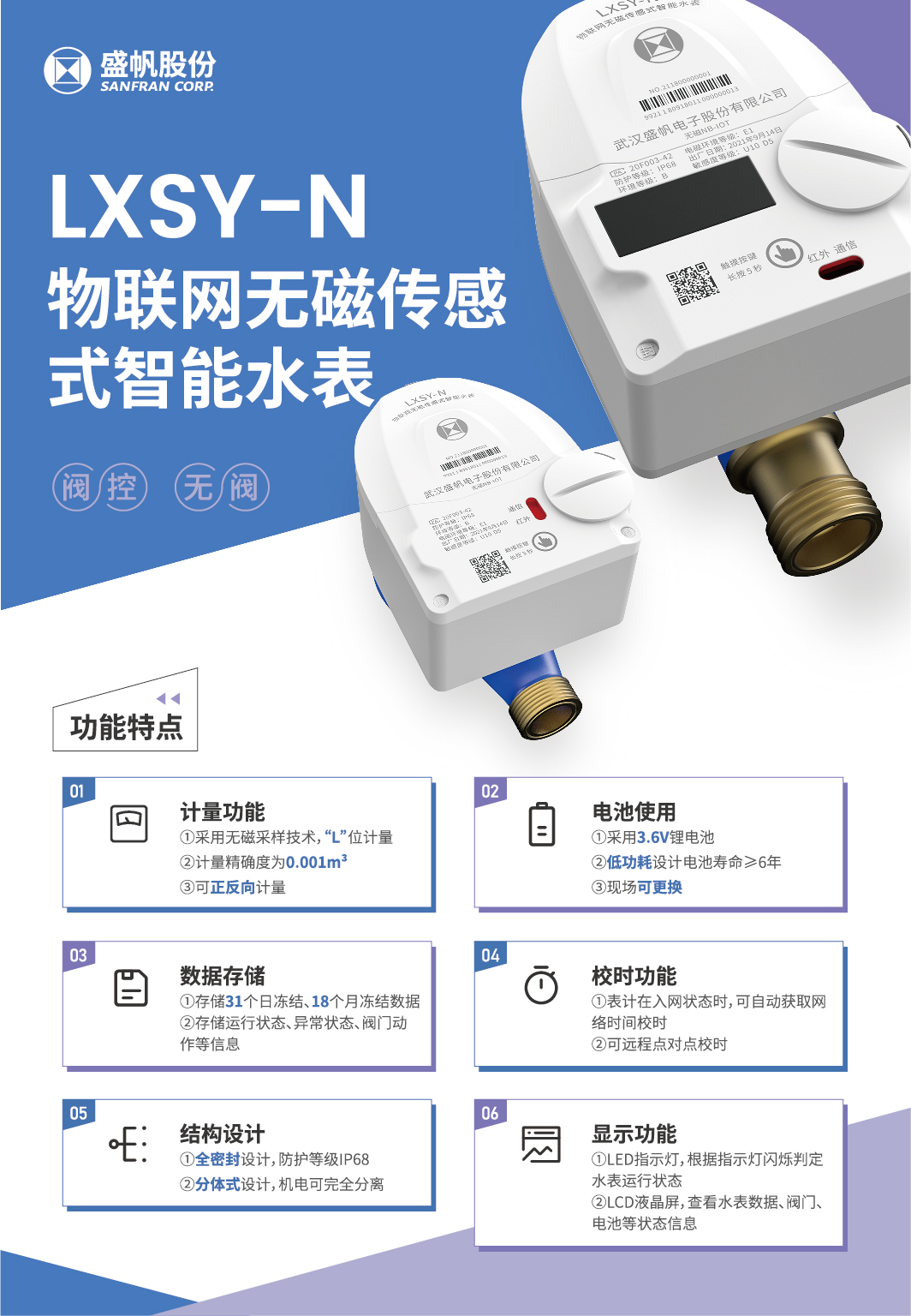 水表是流量測(cè)量中使用最廣泛和最重要的儀表之一,LXSY-N遠(yuǎn)傳冷水表是基于NB-IOT技術(shù)的低功耗無(wú)線遠(yuǎn)傳水表,采用分體式設(shè)計(jì),電子單元安裝在獨(dú)立的全密封腔體內(nèi),具有靈敏度高、抗干擾能力強(qiáng)、傳輸距離遠(yuǎn)等特點(diǎn)。
